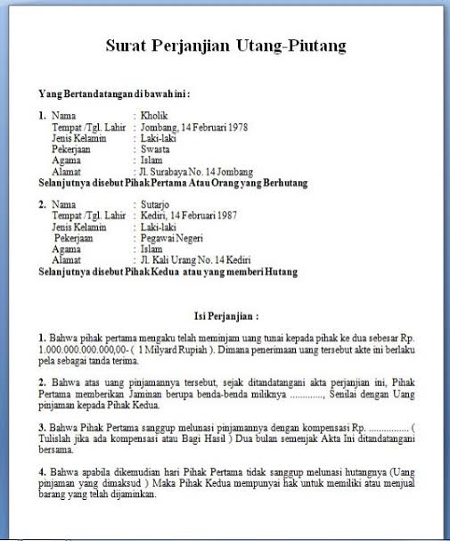 Contoh surat perjanjian hutang piutang diatas materai ini akan ditulis secara lengkap.